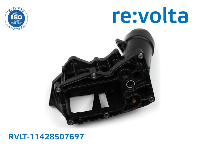RVLT-11428507697 - корпус масляного фильтра со встроенным теплообменником (масляный стакан/колба масляного фильтра) для автомобилей марки BMW. Является аналогом-заменой оригинальной детали под артикулом OEM 11428507697.