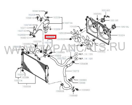 RVLT-1350A043 — тройник системы охлаждения (заливная горловина радиатора с крышкой) для Mitsubishi.