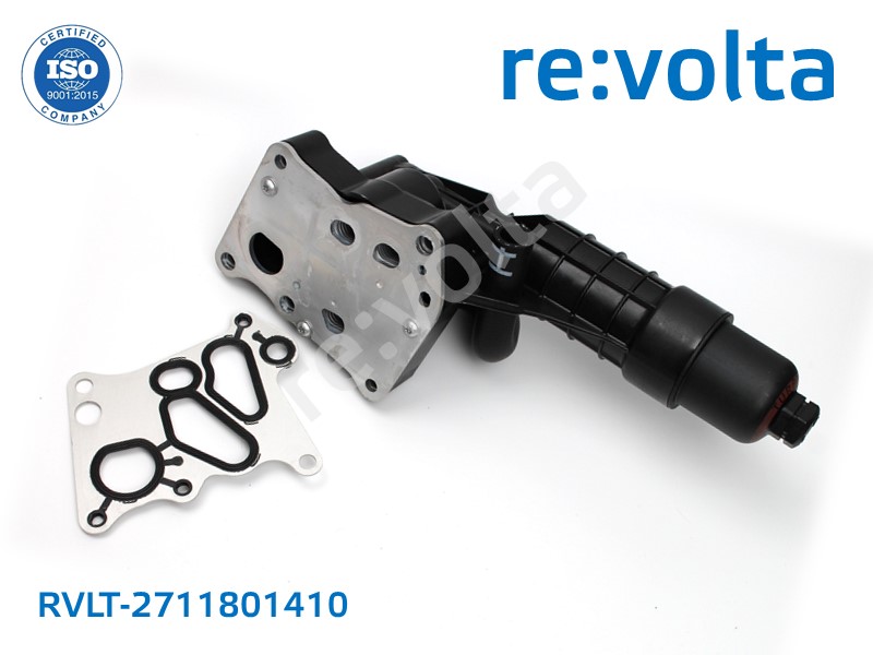 RVLT-2711801410 — корпус масляного фильтра с теплообменником (масляный стакан ) для автомобилей Mercedes‑Benz. Деталь интегрирует в себе функции корпуса фильтра и элемента охлаждения моторного масла. Является аналогом-заменой оригинальной детали под оригинальным номером OEM A2711801410.