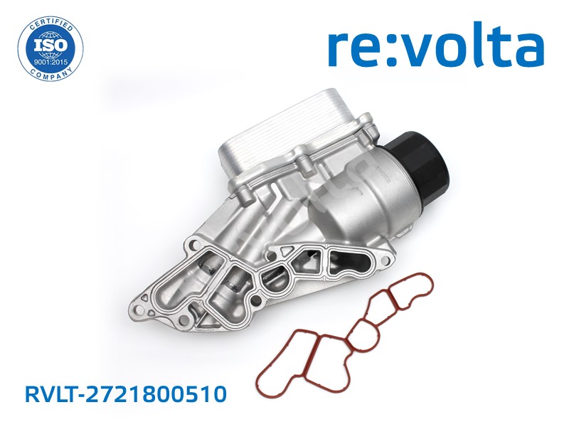 RVLT - корпус масляного фильтра с теплообменником (масляный стакан) для автомобилей Mercedes‑Benz с двигателями серии M272. Является аналогом-заменой оригинальных деталей под артикулами OEM A2721800410, A2721800510.