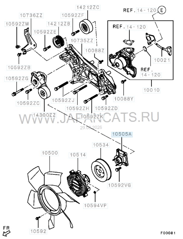RVLT-MD364879 — кронштейн в сборе вентилятора охлаждения (кронштейн муфты вентилятора охлаждения / вискомуфты) для автомобилей марки Mitsubishi. Деталь является аналогом-заменой оригинальной детали под артикулом OEM MD364879, MD303501.