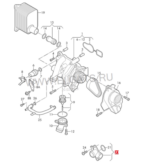 Фланец 06J121132G выполняет в системе охлаждения двигателя следующие функции: