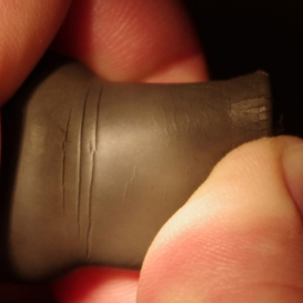 Мы видим явное нарушение целостности элемента, микротрещины по корпусу (кстати в них скапливается пыль и влага — замечательный проводник электрического тока), коричневатый оттенок резины четко указывает на то, что данный наконечник более не пригоден к эксплуатации.